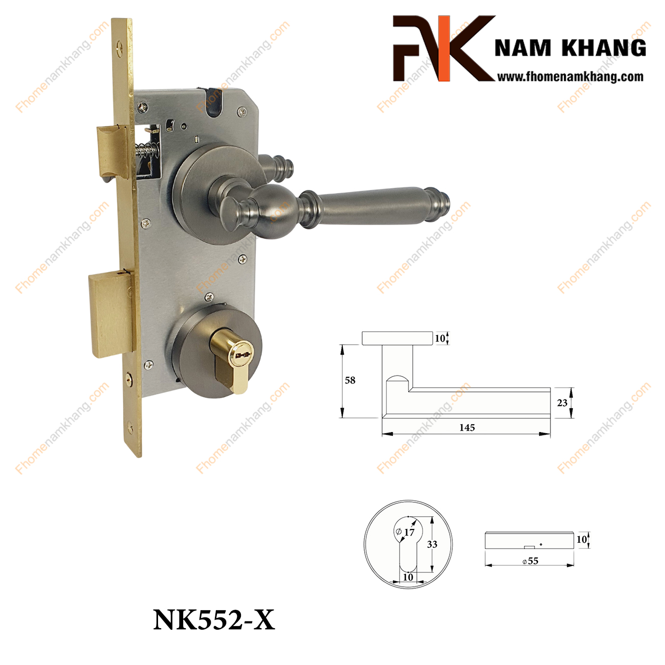 Thông số kỹ thuật Khóa cửa phân thể bằng đồng màu xám NK552-X