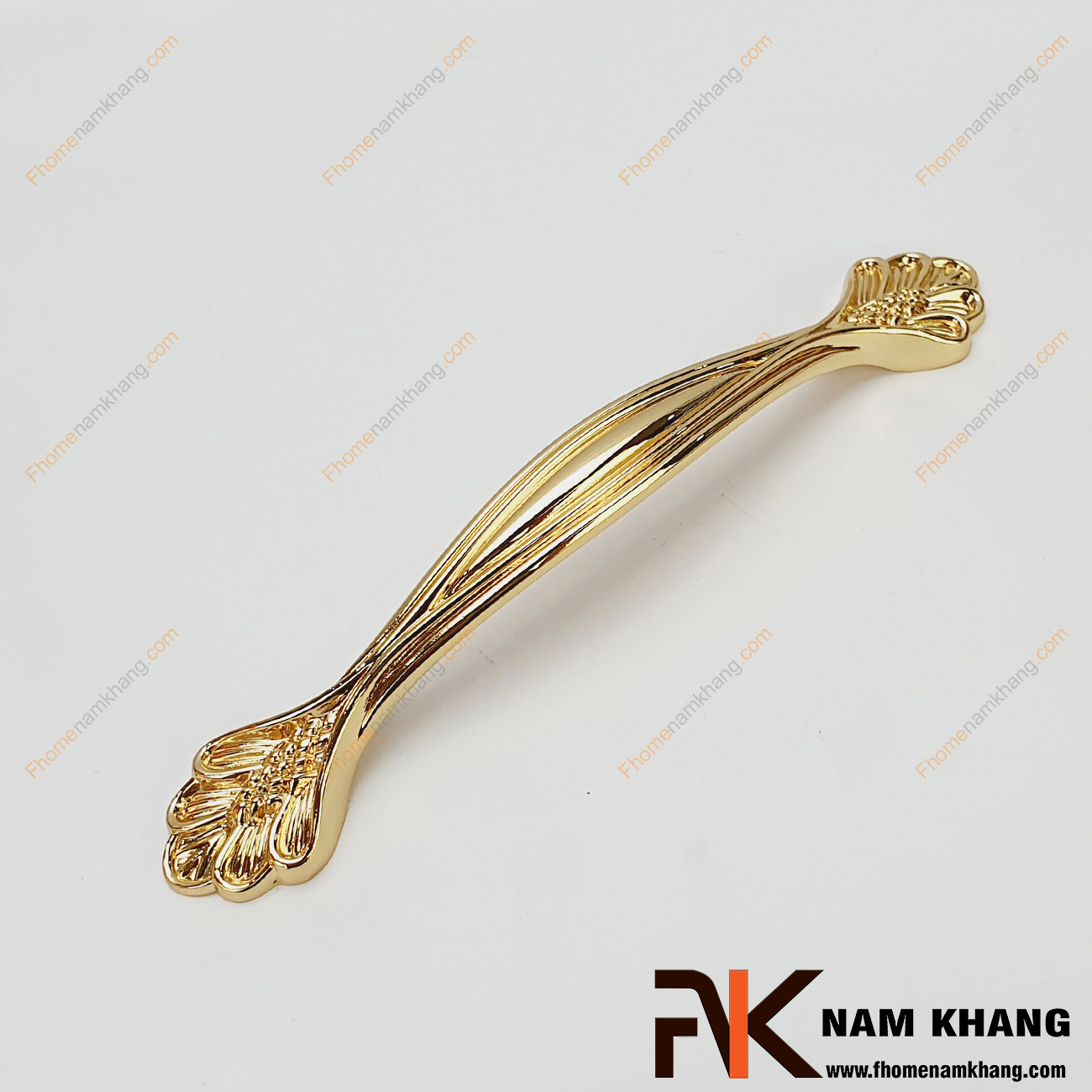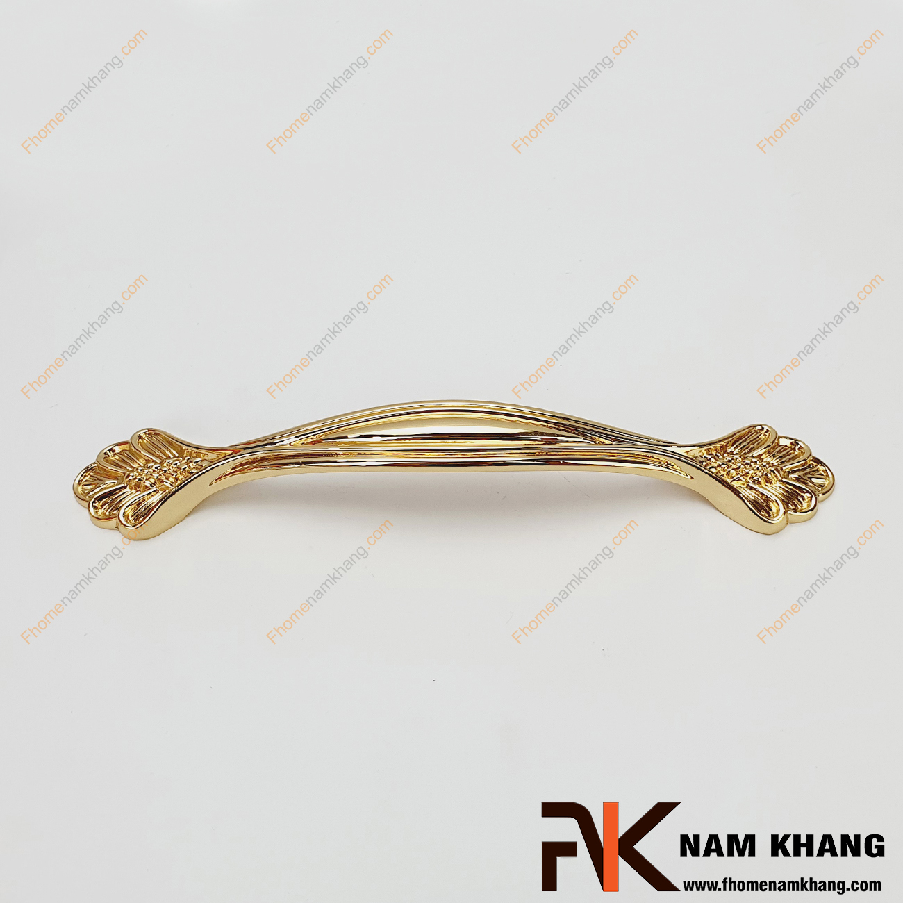 Tay nắm tủ cổ điển màu vàng bóng NK250D-DV có đường nét uốn lượn mềm mại, hoa văn tinh xảo, tạo nên vẻ đẹp cổ điển, sang trọng.